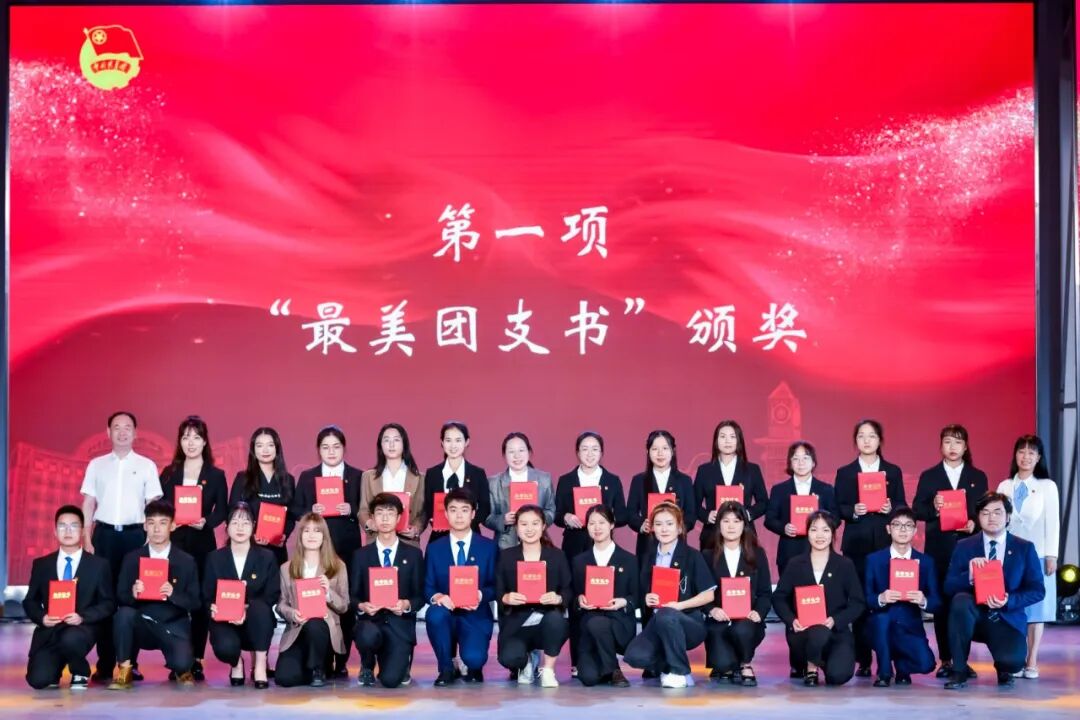▲校党委常委、党委组织部部长兼统战部部长刘琳琳,校党委常委、党委宣传部部长兼马克思主义学院院长周巍共同为荣获“最美团支部”集体颁奖