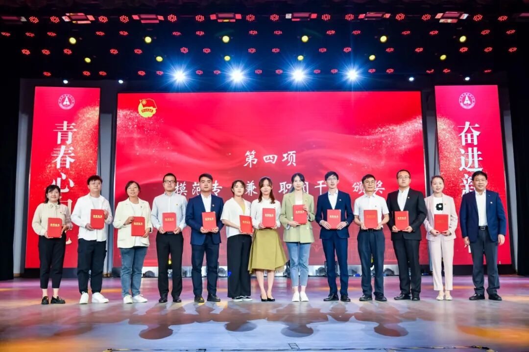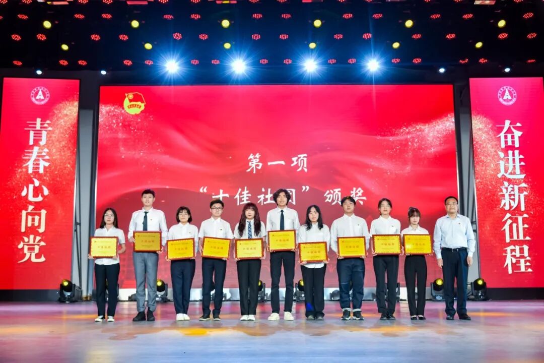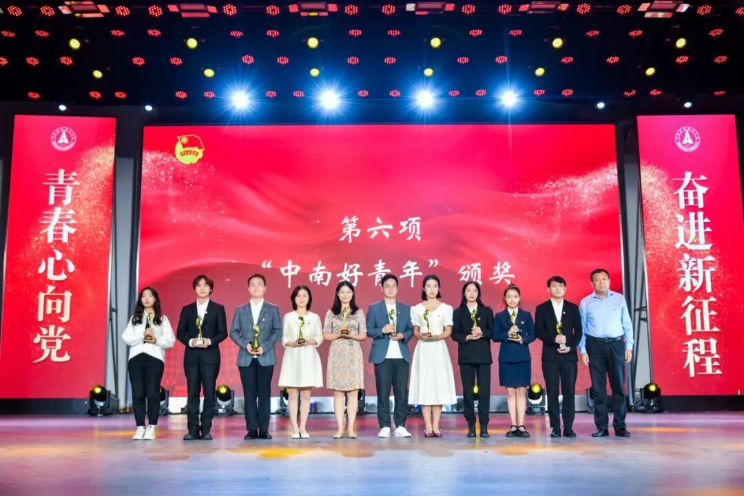 今年,在学校各级党委的关心指导、上级团组织的支持帮助、全校团员青年朋友们和全体团干们的共同努力下,学校团委获评“全国五四红旗团委”荣誉称号。齐唱团歌后的表彰环节,大会集中表彰了过去一学年在共青团战线和青年工作上表现突出的先进集体和优秀个人,与会领导分别为获得2021-2022学年“最美团支书”“十佳志愿者”“优秀社团指导教师”“模范专(兼)职团干”“中南好青年”“荣誉团干”的优秀个人,及“十佳社团”“优秀志愿者协会”“优秀学生会”“红旗分团委”的先进集体颁奖。