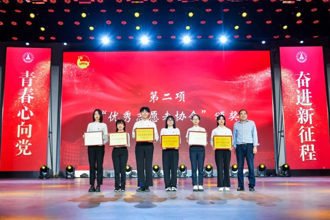 ▲校党委副书记陈明为荣获“优秀志愿者协会”集体颁奖