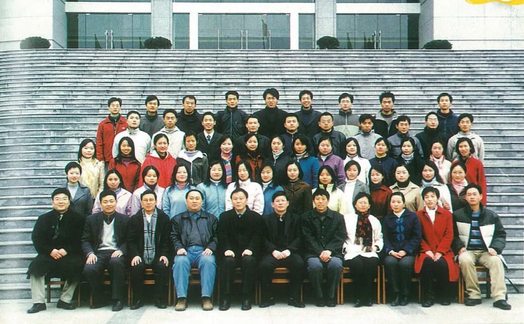 ▲2000级会计学院注会3班毕业合影。第四排左一为陈闵健,第二排左一为吴静