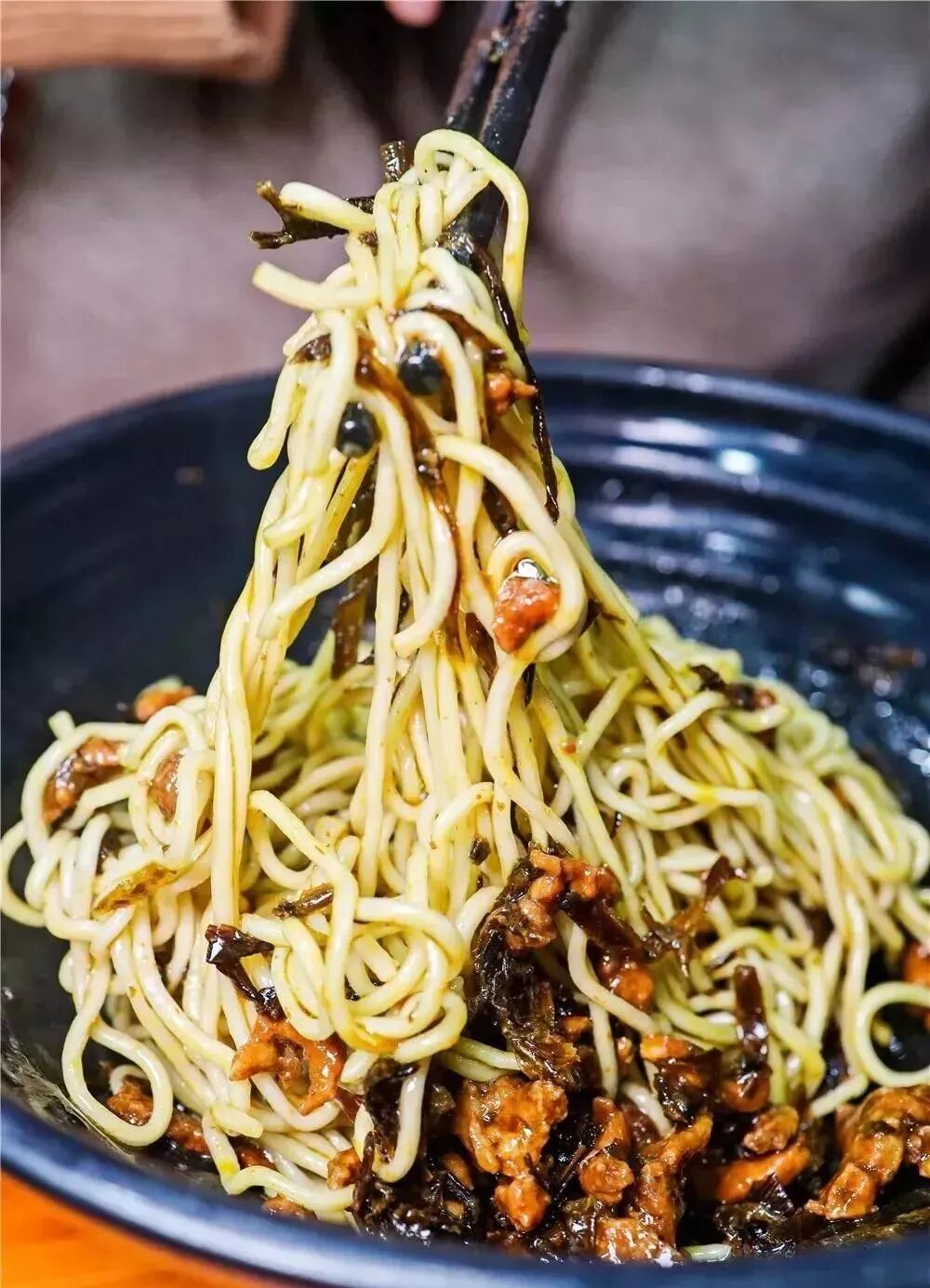 脆哨在我的理解中,是贵州地区对猪油渣的叫法,但脆哨的制作比单纯的猪油渣更加复杂,因为各种秘制香料的加入,脆哨的口味呈现出更加五彩斑斓的油脂香气,可以理解为高级调味版的猪油渣。所以和葱油拌面搭配有锦上添花的效果。