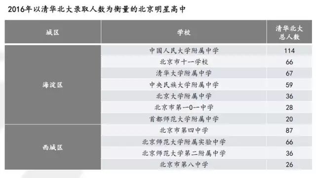 各区重点中学到了高考短兵相接,还是海淀区的重点全面占优。