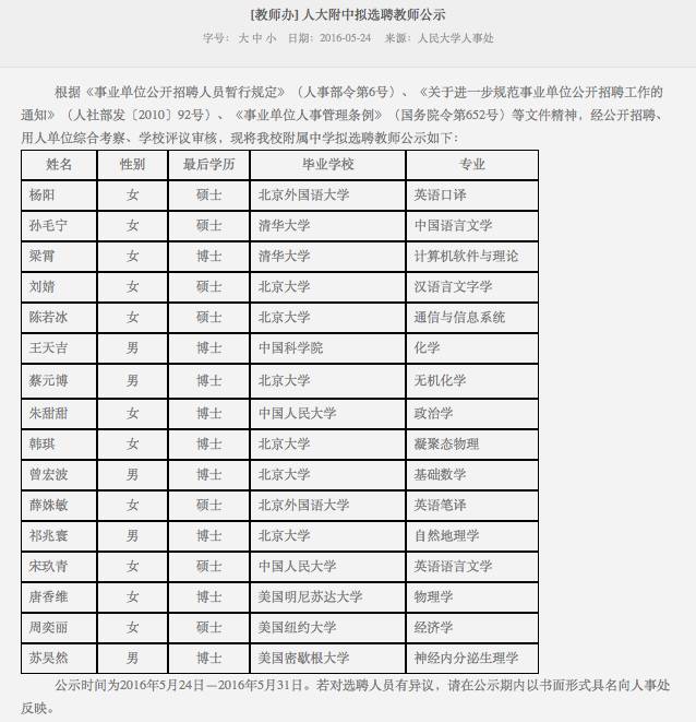 (去年网传的人大附中师资招聘情况一览)