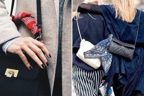 出现了将丝巾扎入腰带,