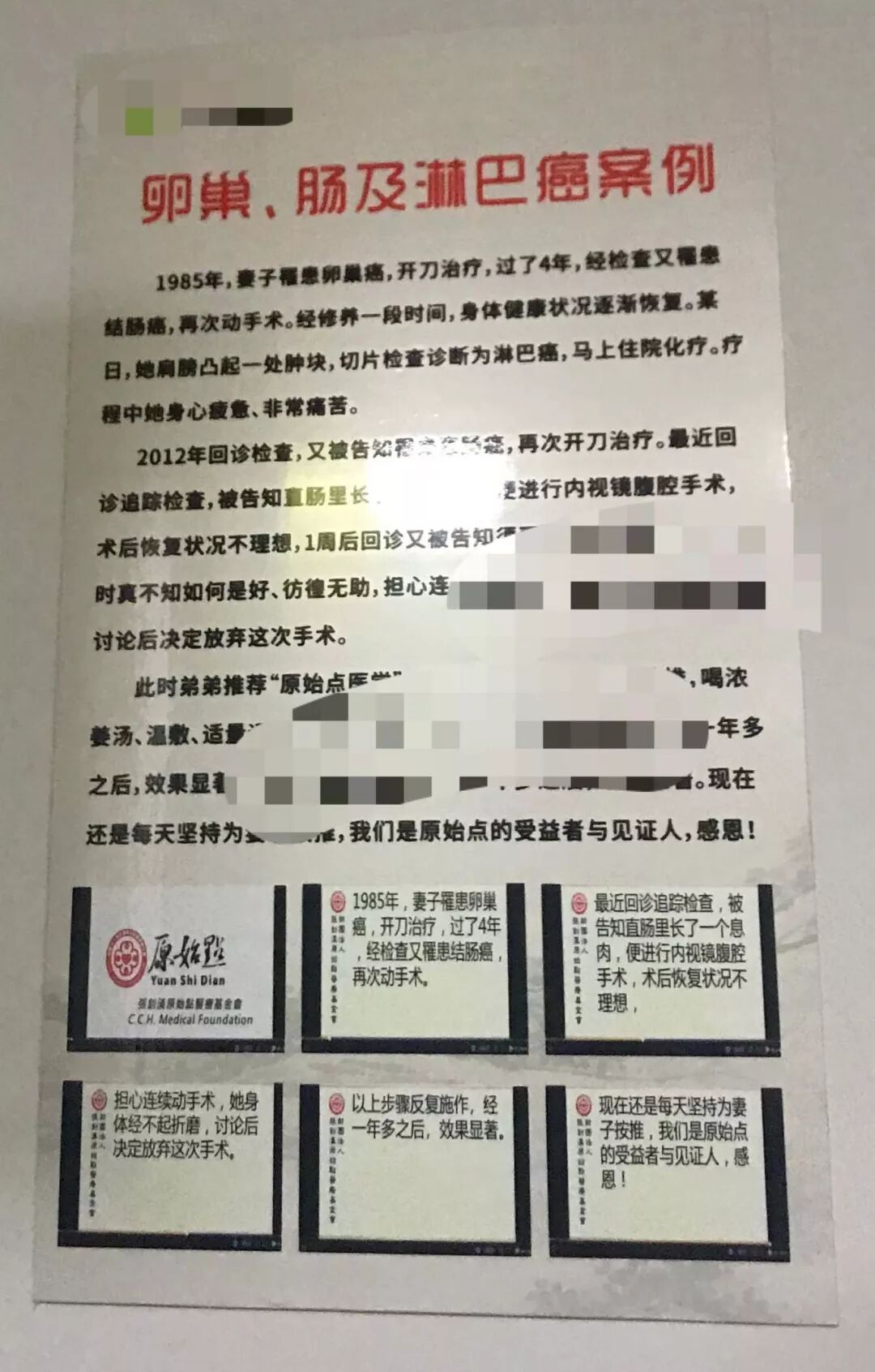 他们口中所谓的治病手法名为“原始点”,该手法声称人的疾病是因筋脉被堵住,只需要疏通这些堵塞的筋脉,然后用姜汤驱寒就能痊愈。上医院去看病,是“病上加病”。