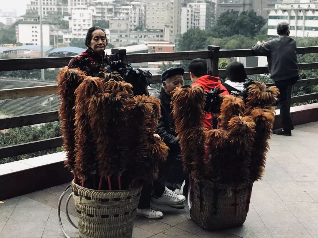 在解放碑,“棒棒”的形象与背后的繁华高楼形成对比,现在他们更多以零散的形式出现在火车站与旅游景点,同样成为了重庆的符号与被观看的对象。在他们身上,我见到了自己所熟悉样貌。来自农村,缺少物质积累与文凭,只能凭借体力劳动在城市生存,偶尔他们会作为另一种文艺的虚假关怀的“边缘人”形象,被无差别再现。
