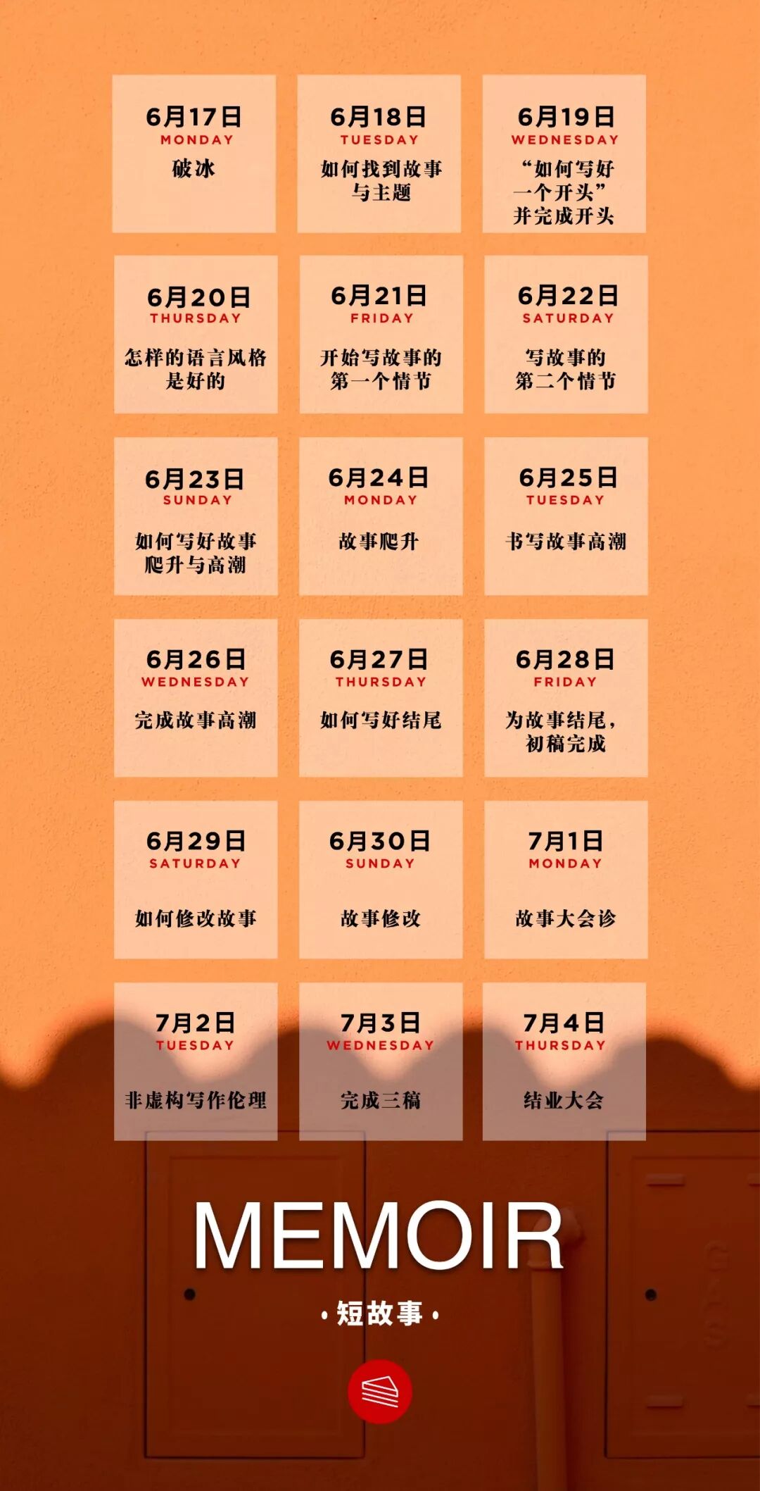 『 本次短故事课程表 』