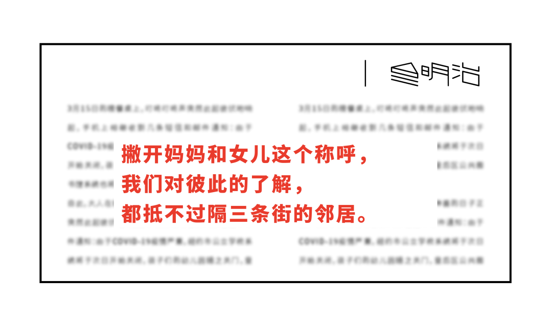 撇开妈妈和女儿这个称呼,我们对彼此的了解,都抵不过隔三条街的邻居。