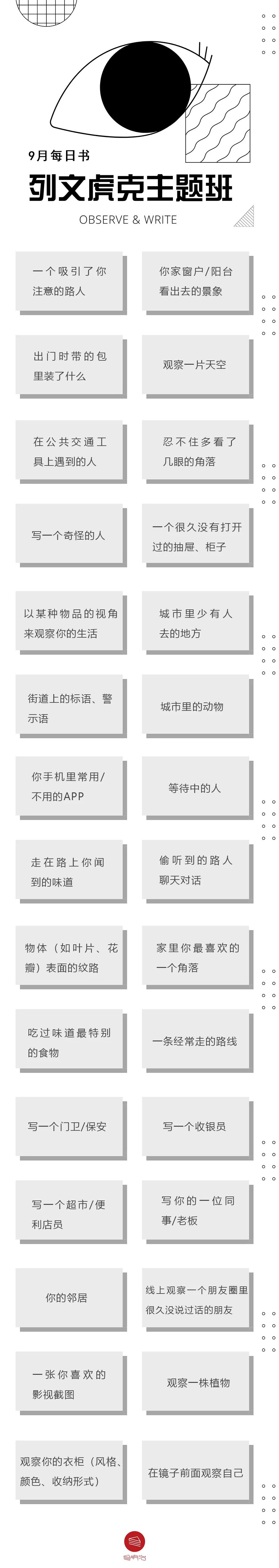 你可以来每日书列文虎克班观察什么呢?编辑部给大家提供了30个写作小灵感:
