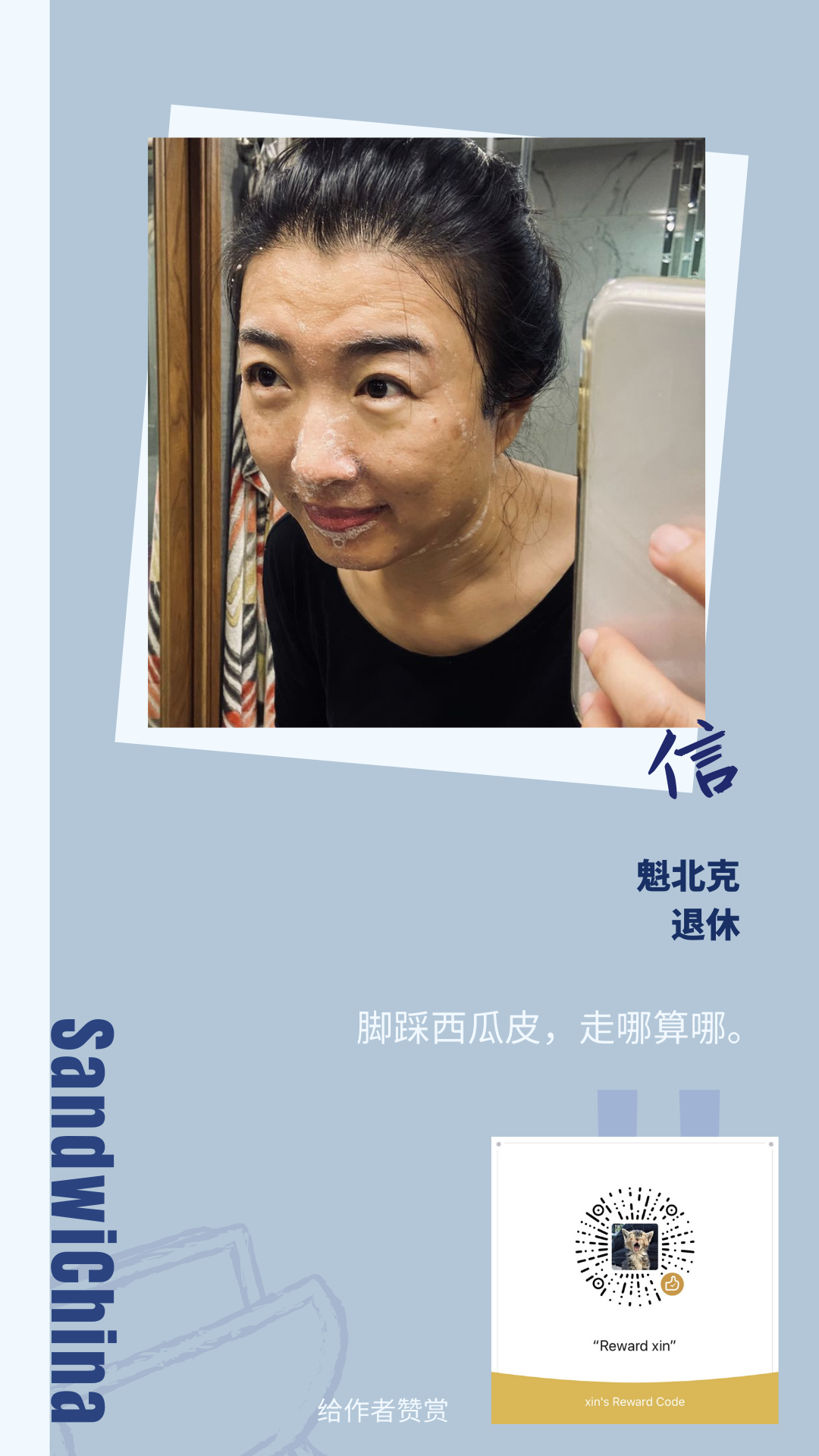 此刻我的生活中,不仅仅是合法工作的可能性没了,连过去摩肩接踵一个接一个得达成的小目标也没了。作为一个从不愿和生活搏斗,只想随波逐流的人,我认了。从这个月起,如果被问起状态,我可以坦然接受说,我退休了。只是真没啥可骄傲的。我只是被生活的浪头带到了这里。谢谢老天爷。