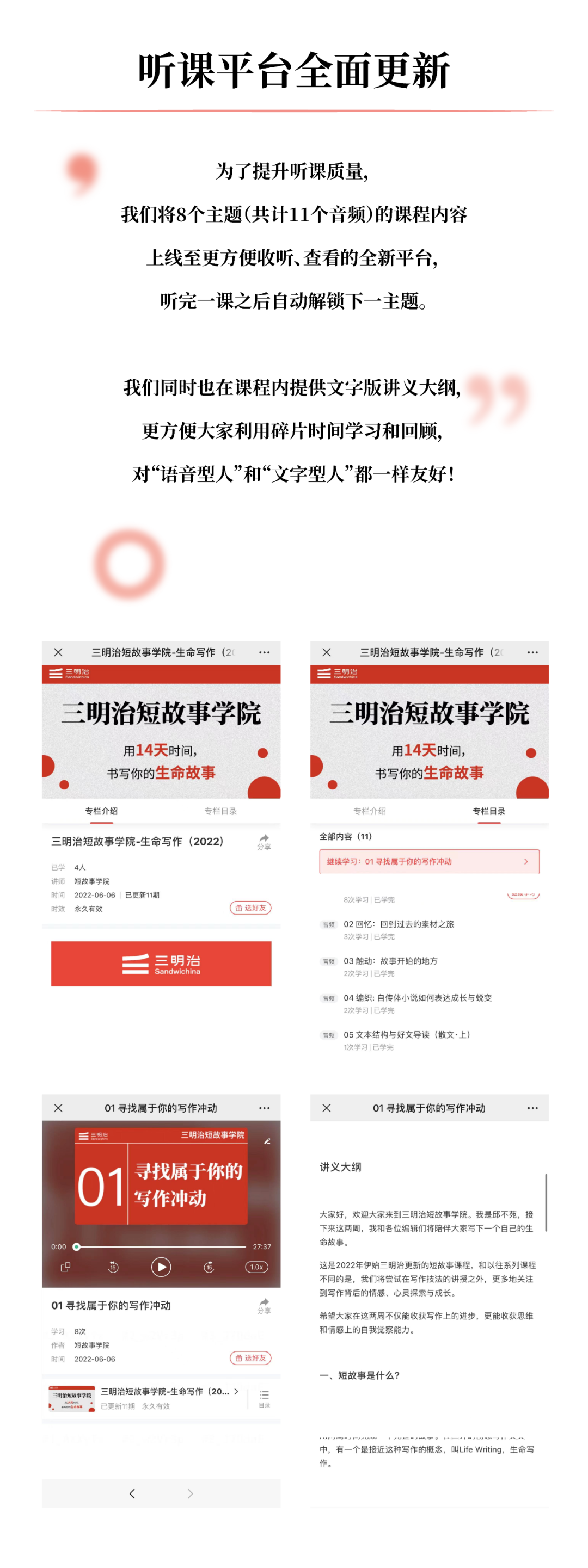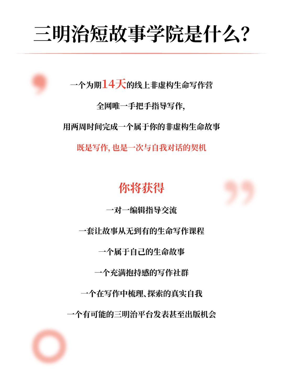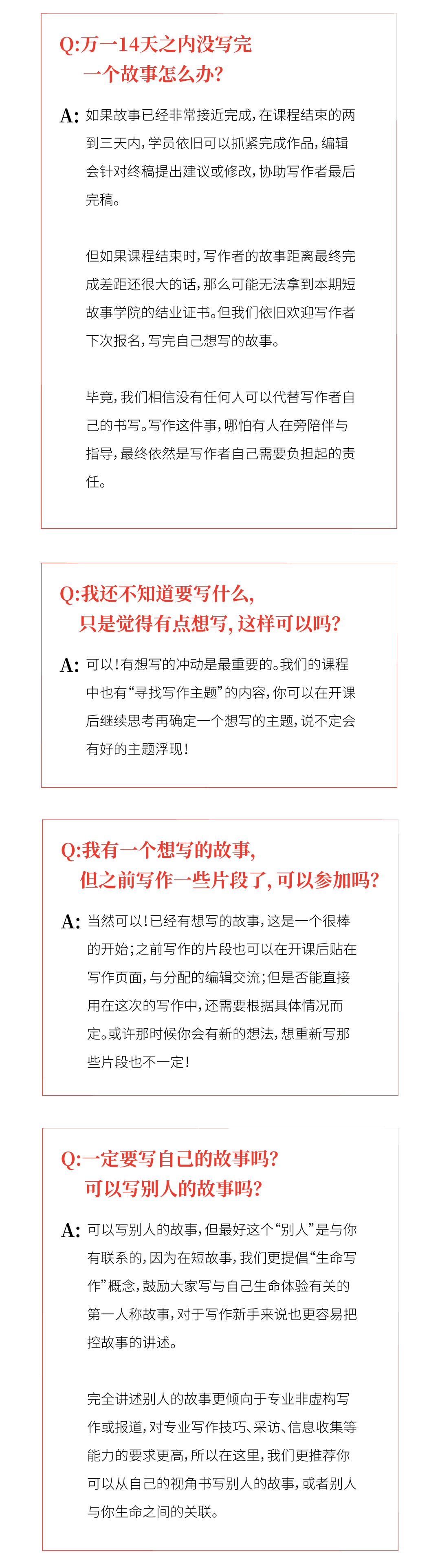 12月16号-12月29号,新一期短故事学院即将开始,我们希望用14天时间帮助你寻找并写出自己的故事,资深编辑将和你一对一交流沟通,挖掘被忽略的感受和故事,探寻背后的人文意义和公共价值。让你的个体经历与声音通过你自己的独特表达,被更多人听见和看见。