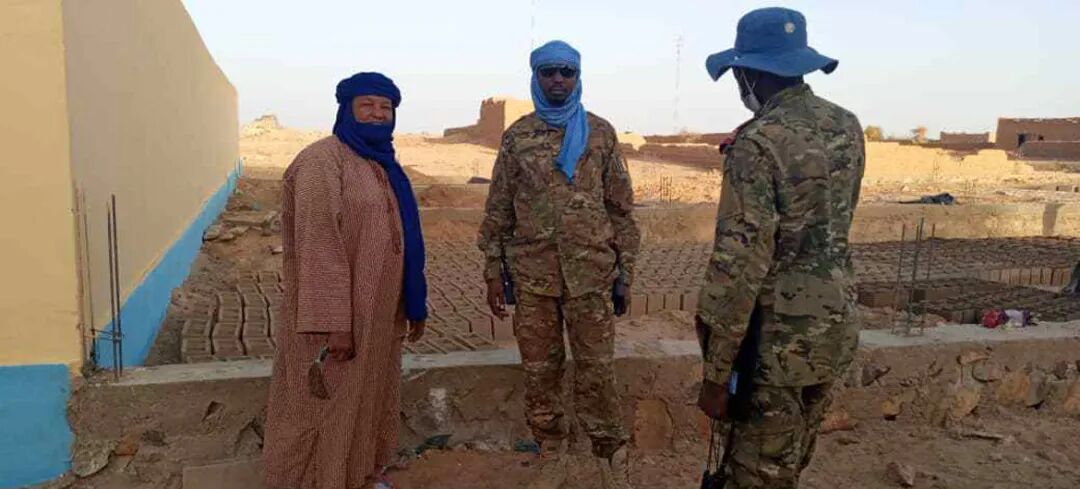 © Courtesy Lieutenant-Colonel Chahata Ali Mahamat | 阿卜杜拉扎克上尉(中)被部署在马里东北部的阿盖洛克超级营地。这个营地遭到武装恐怖组织的袭击。