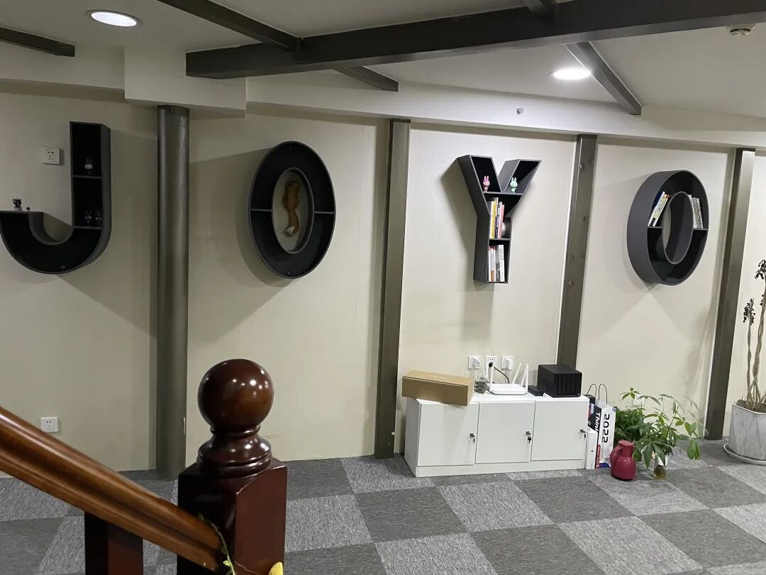 办公区内的书架做成了公司名字的缩写字母