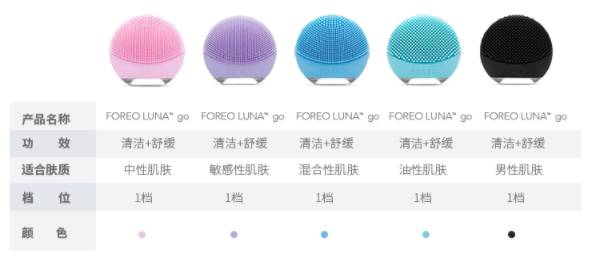 而luna2代比1代升级的除了刷头和T-sonic清洁系统,还分为5个不同颜色针对不同的肤质如下: