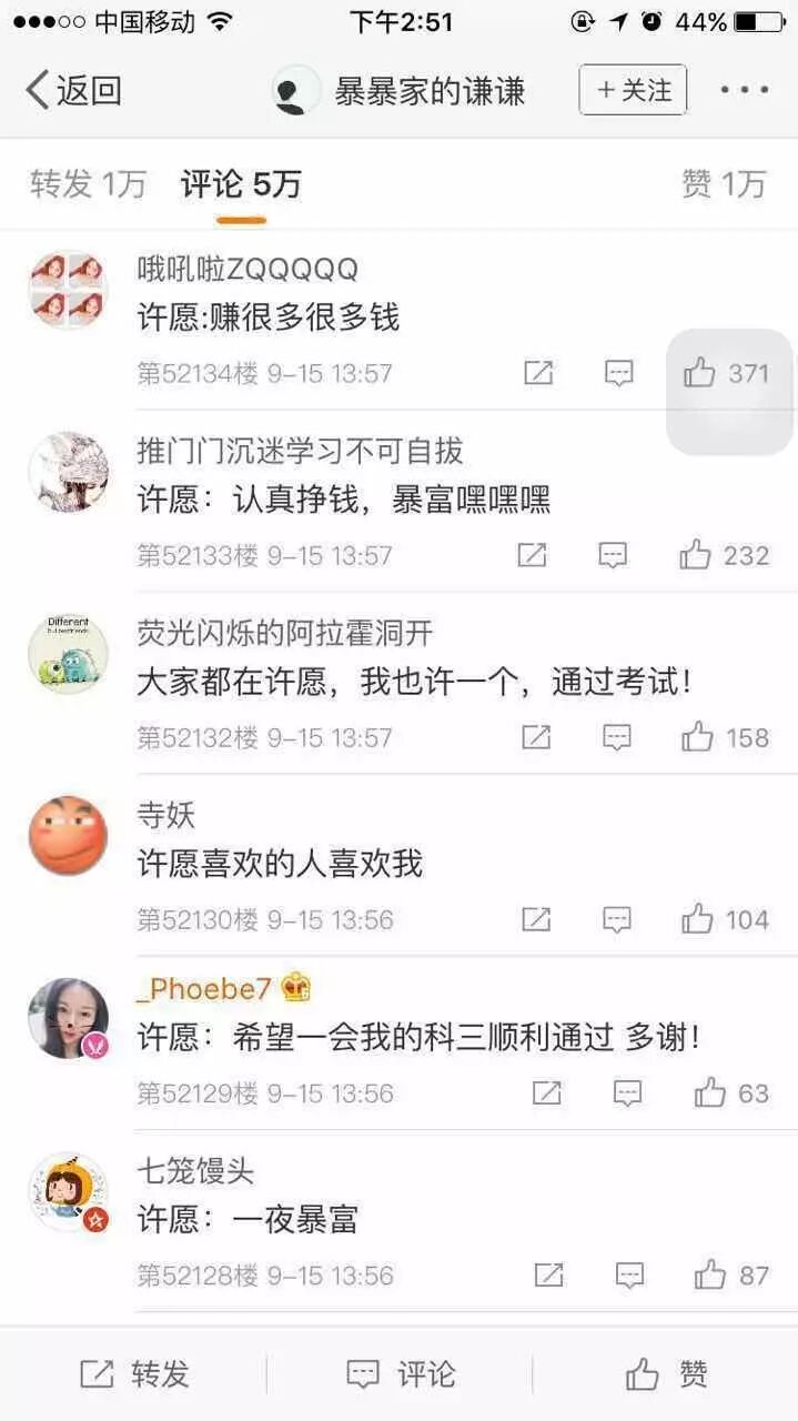 所谓求锤得锤,这个粉丝的微博已经成了许愿池。