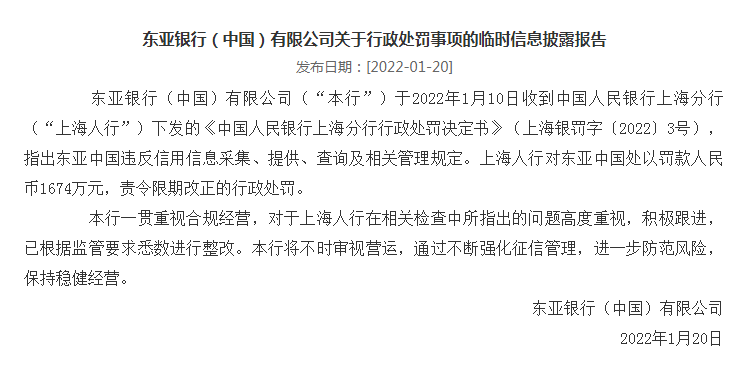 东亚银行(中国)关于今日网络谣言的说明