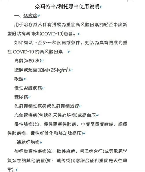 我国《新冠肺炎治疗指南(第9版)》中,提到了奈玛特韦适用人群为发病5天以内的轻型和普通型且伴有进展为重型高风险因素的成人和青少年(12-17岁,体重≥40kg)。今年2月,国家药监局通过应急审评审批,附条件批准了辉瑞奈玛特韦进口注册。