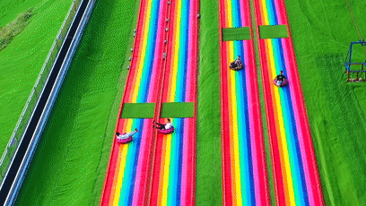 波澜起伏,彩虹般倾泻而下,满眼都是浪漫色彩。结束后可乘坐飞天魔毯返回起点,快乐不停歇。