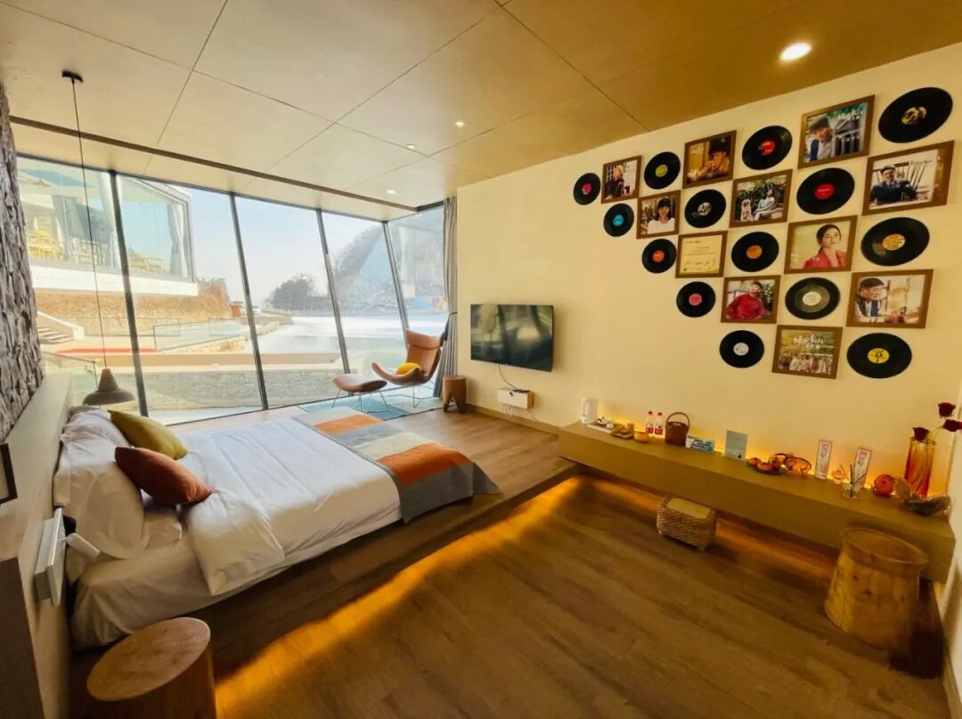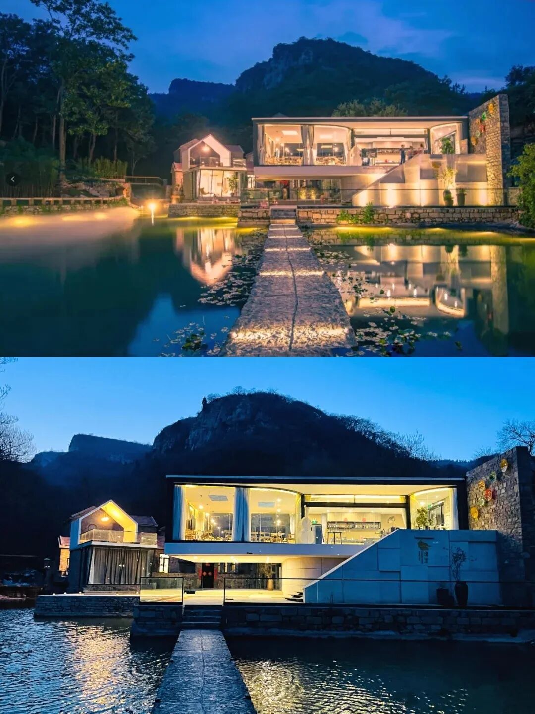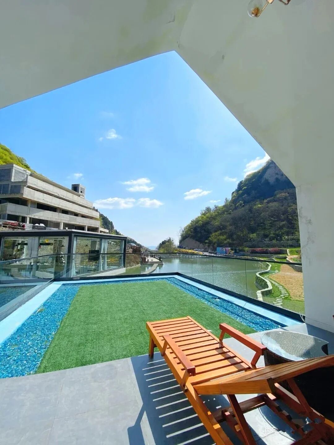 风格以野奢为主调,装饰品大多都是博山琉璃,每一个房间都经过精心的设计,舒服度满分~还有全景玻璃大厅、露天阳台等绝美拍照打卡地。
