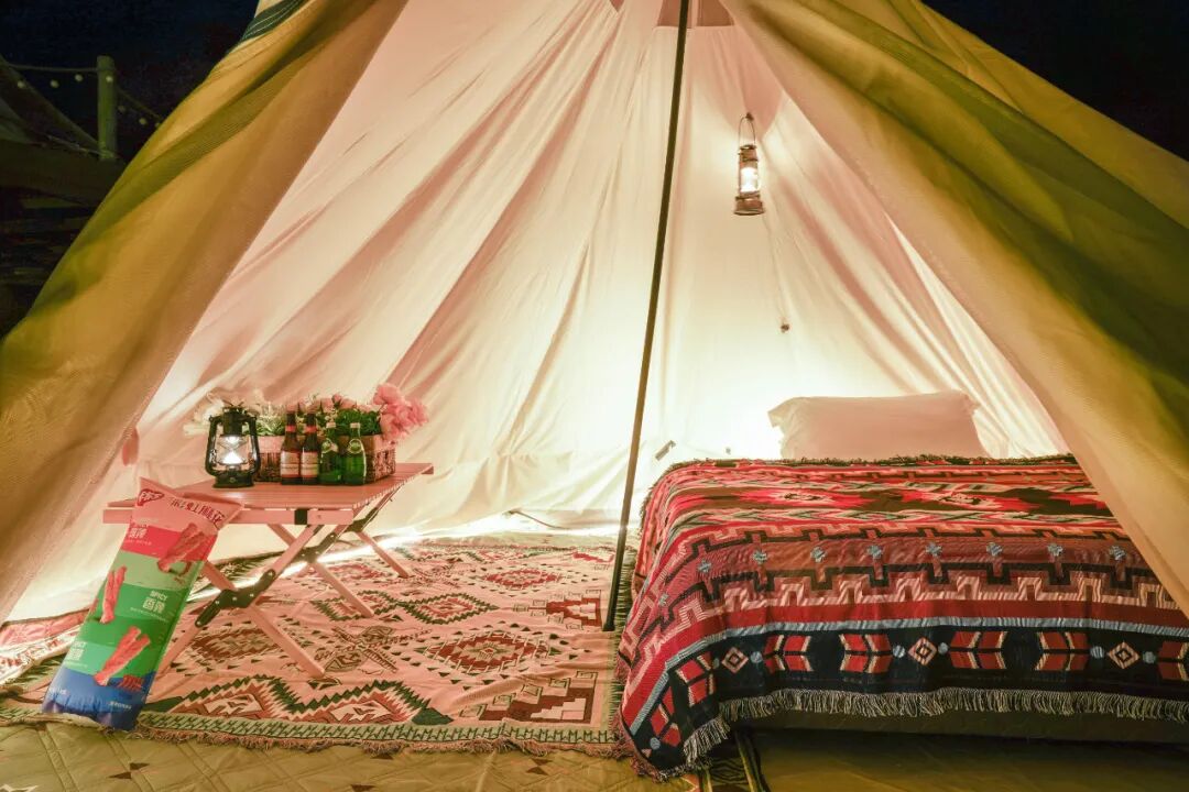 在这里可以以星空为被,大地为床,躲进帐篷里和最亲密的家人或友人,观赏天空繁星,伴着虫鸣鸟语安然进入梦乡。
