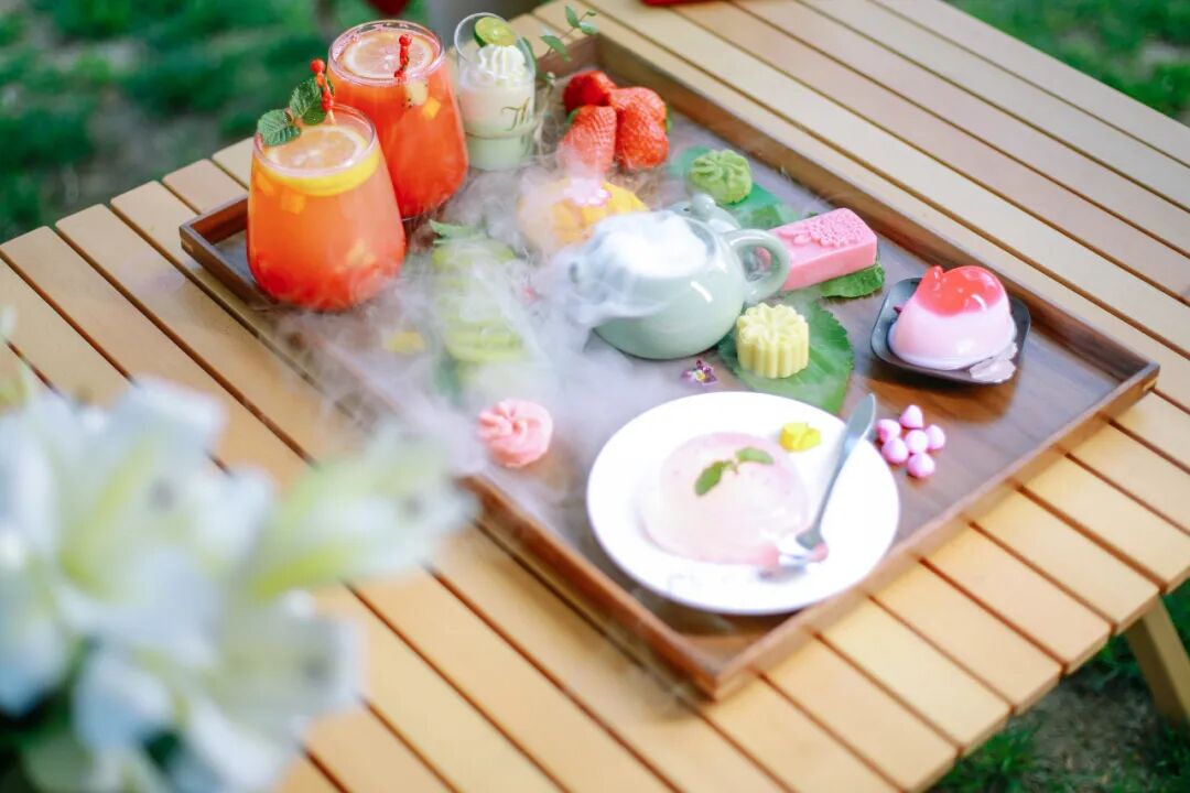 在这儿,有甜蜜的下午茶,水果、蛋糕、饮料……光是看着就能让人心情愉悦,午后,沐浴着阳光和新老朋友一同举杯共饮,一切那么惬意。