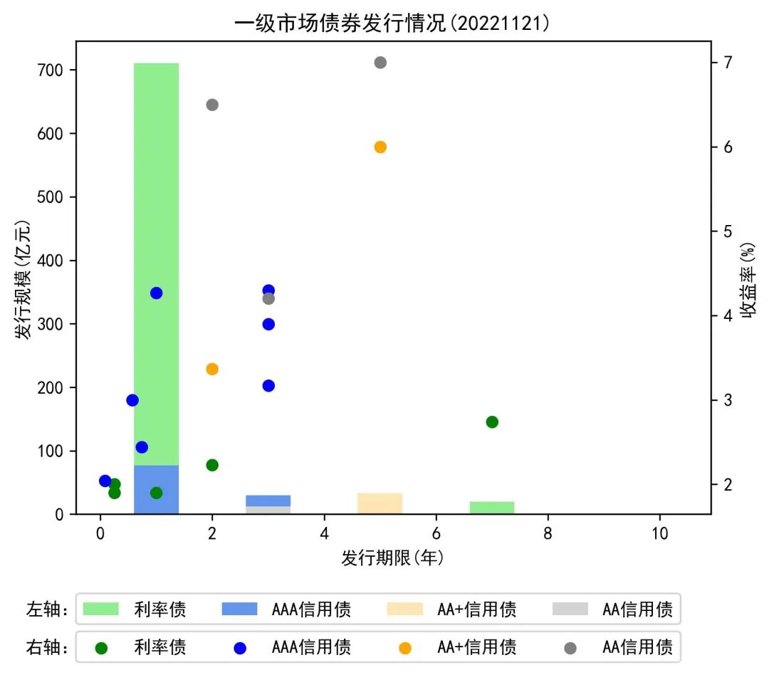 11月18日,国开债成交相对活跃。1年期利率债收益率以下行为主;3年期、5年期、10年期利率债收益率不同类别涨跌互现。
