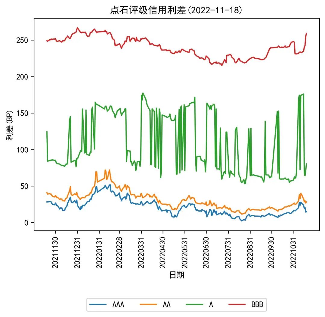 **点石评级信用利差:根据点石的评级对债券进行分类,计算与国开债收益率曲线的利差。