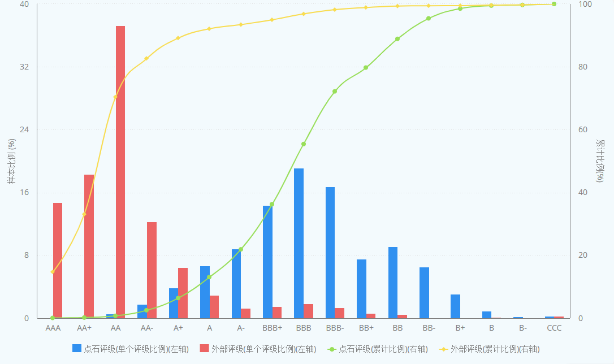 *点石的主体信用评级符号与国际主流评级相同,由AAA到D分为17级,与中国现行的外部评级含义不同。