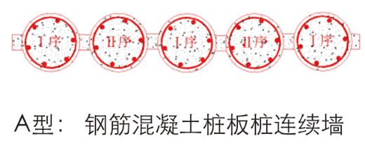 在两棵支护桩(Ⅰ序)之间插接桩板(Ⅱ序),Ⅰ序支护桩与Ⅱ序桩板咬合连接,形成桩板桩结构单元,多个结构单元依次连接,形成排桩式支护、堵水连续墙。排桩式支护、堵水连续墙插接桩板由长螺旋多功能钻机施工,成桩速度快,工期可缩短5倍。经济节约,造价可节省30%,插接桩板结构致密稳定、安全性好。![]()