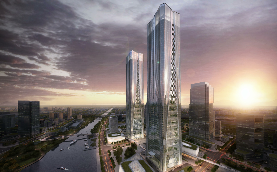 上海张江双子塔是上海张江科学城核心区地标性建筑,毗邻川杨河畔,是两栋高度及立面相同的超高层塔楼, 两栋塔楼犹如一道面向世界的大门,欢迎全球创业者来张江共建世界一流科学城。