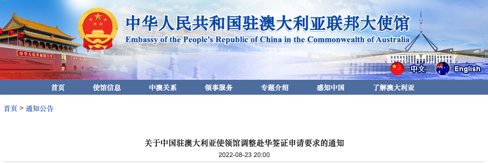 本周,中国驻澳大使馆连续发布了2条和回国政策相关的新规通知: