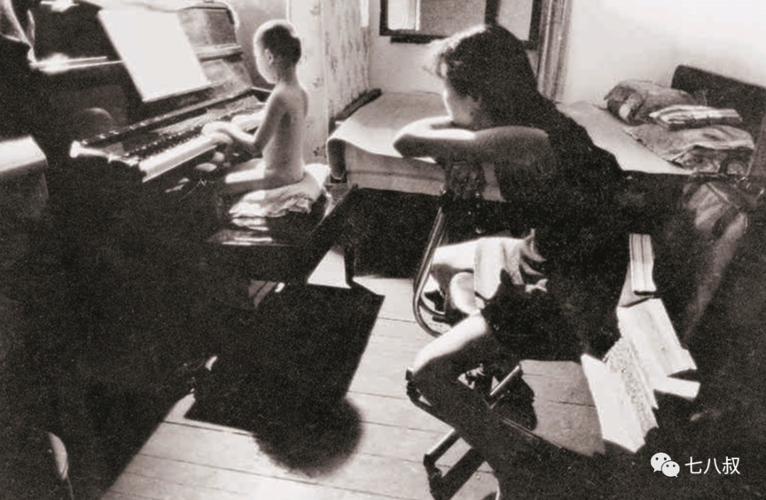 △1991年,山东青岛的一位家长在卧室里守着孩子练琴。