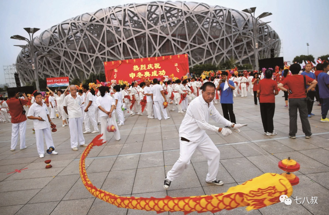 △2001年7月13日,北京申奥成功,长安街上的人们击掌欢庆。