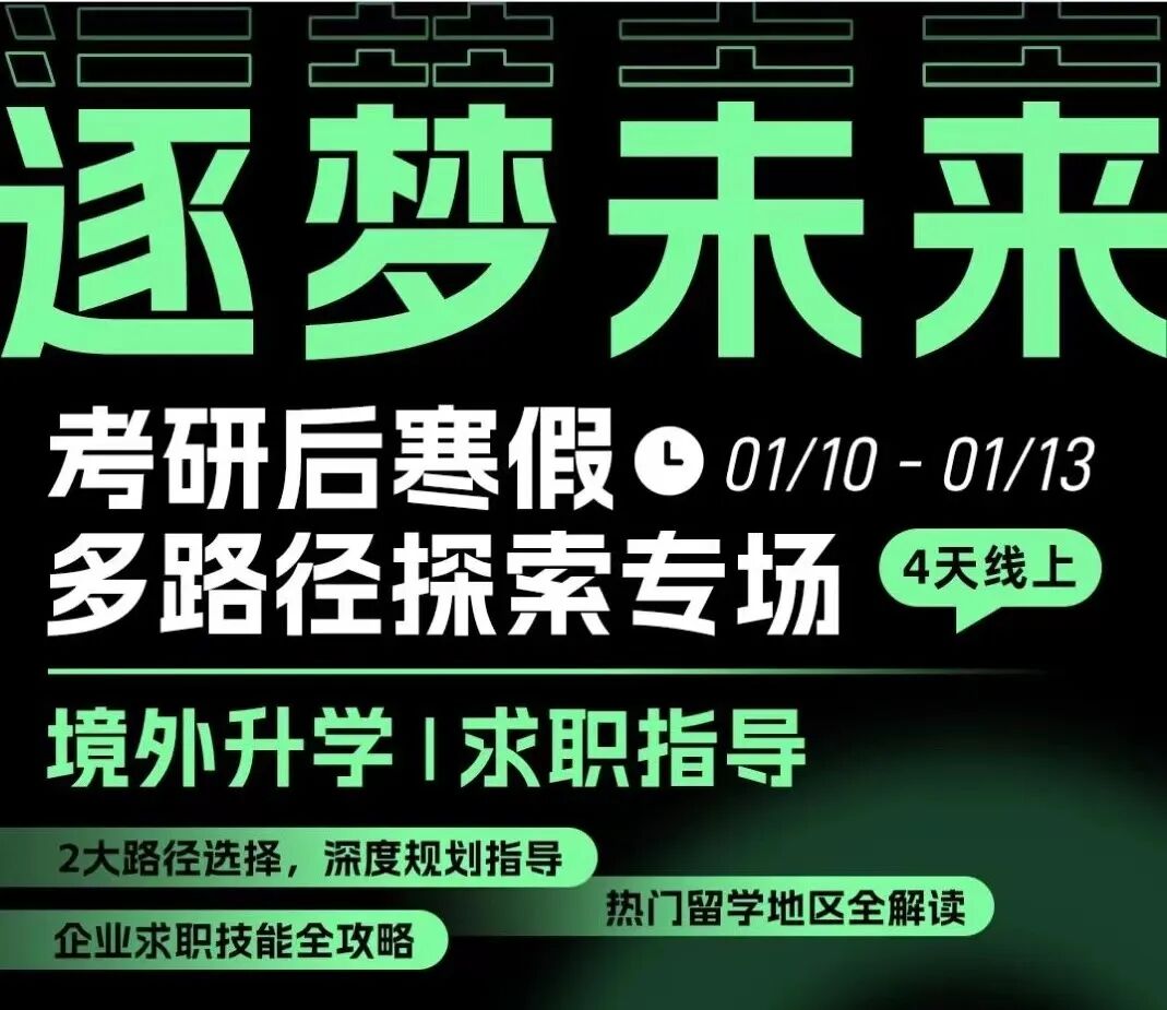 本周,学校已经开展了“考研后,寒假多路径探索专场”生涯训练营,为毕业生利用寒假时间赋能提升提供了平台。
