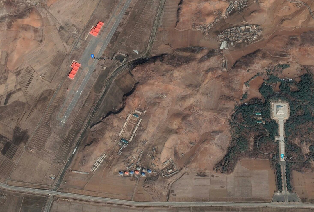 笔者查阅南北双方的公开资料,均未查到对这次翻修原因的官方解释;但对比其他的通用航空机场,发现附近要么有林业矿产资源,要么有旅游景点,而在江东机场东边不到1500米的地方,确实有个非常不一般的景点——檀君陵。作为朝韩共同宣称的朝鲜半岛第一个朝代檀君朝鲜的奠基人檀君的陵墓,在朝鲜两代领导人的亲自指示下,檀君陵于1994年10月11日完成迁址重建工作,成为朝韩共同的“民族圣地”之一。