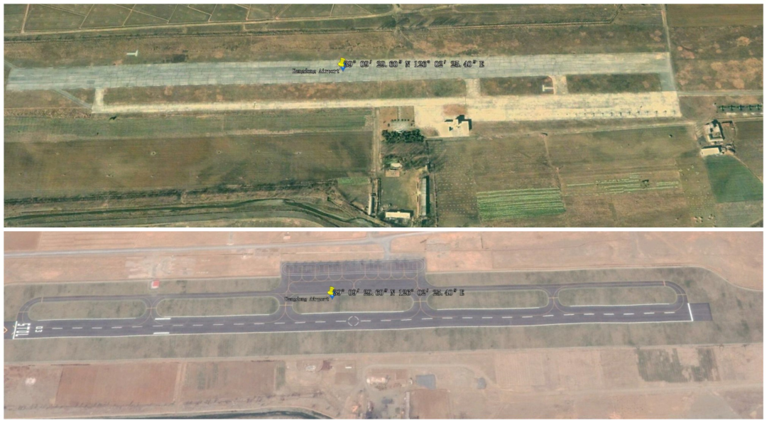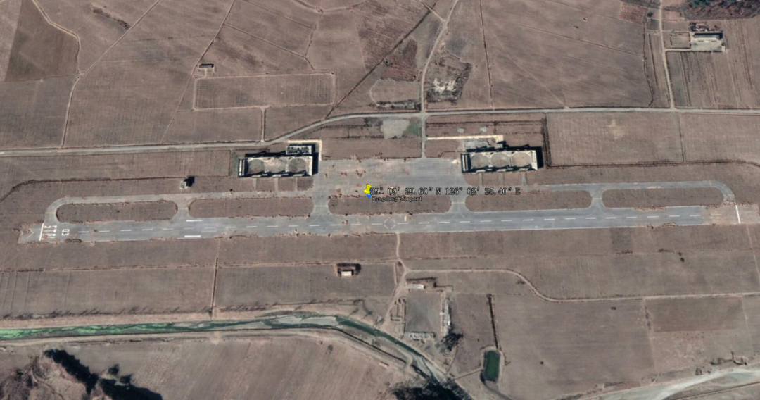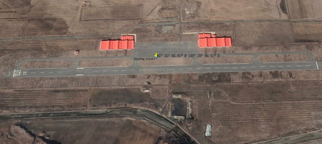 就在金正恩视察后不久,江东机场迎来了一次堪称重建的全面翻新,重新铺设的跑道长度延长到了1060米,滑行道和停机坪布局也大为改变,构造简陋的原部队营区更是被彻底拆除。起初笔者认为这种变化与金正恩的视察有关,但从2015年下半年开始,停机坪两侧还对称修建了两座建筑,覆以红色顶盖,使得此时的江东机场整体更像是一座通用航空机场、而非军用机场。