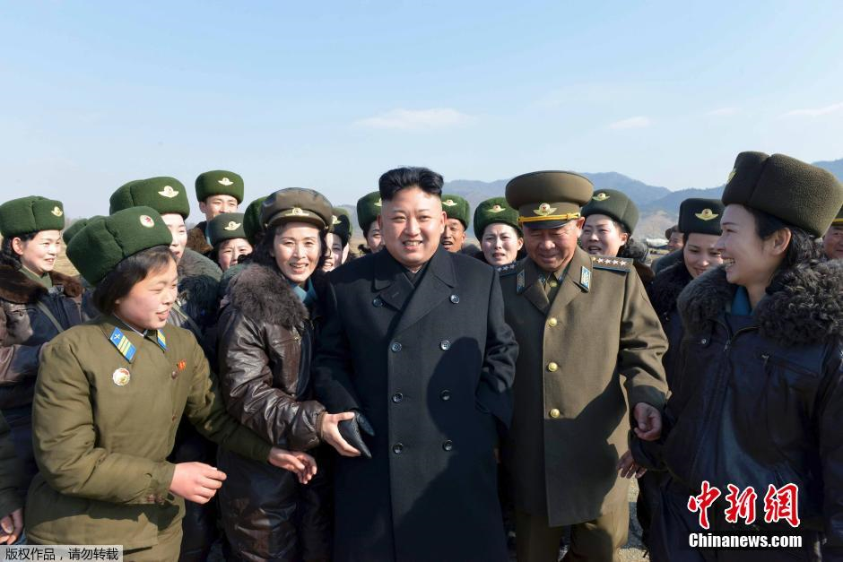 △2014年3月7日,金正恩现场指导荣获“吴仲洽七团”称号的这支部队进行飞行训练