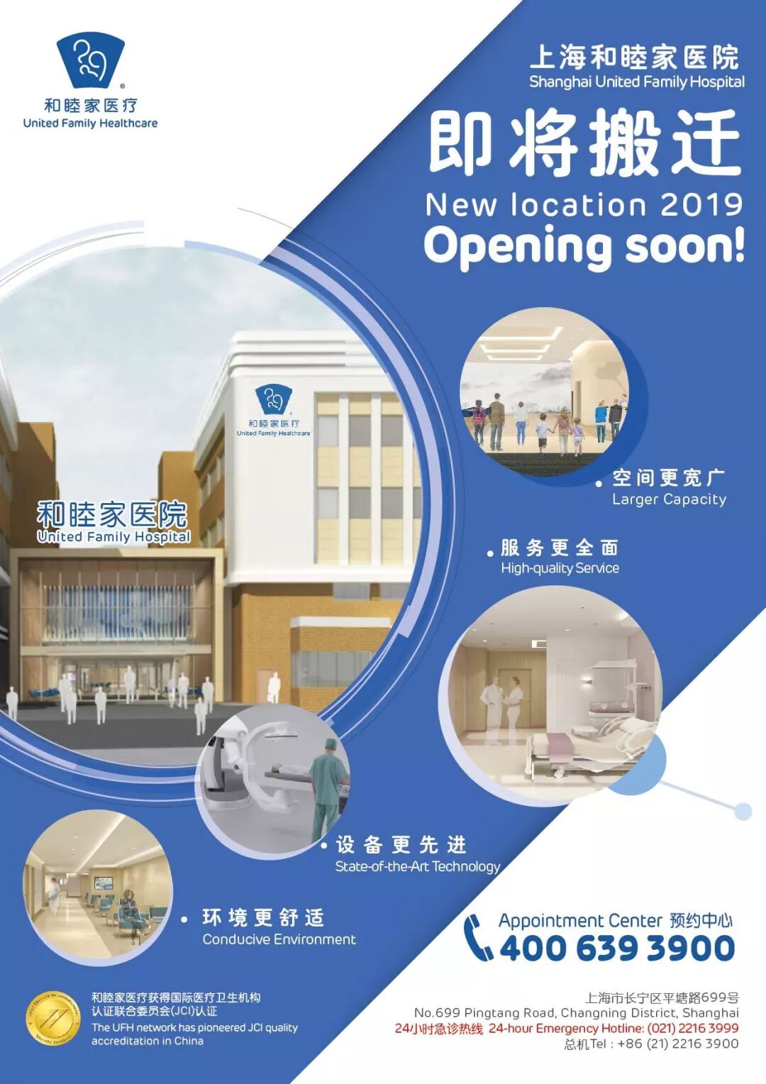 In order to create a good medical environment for our patients as well as a comfortable working environment for staff, Shanghai United Family Hospital will be officially relocated on March 1st!