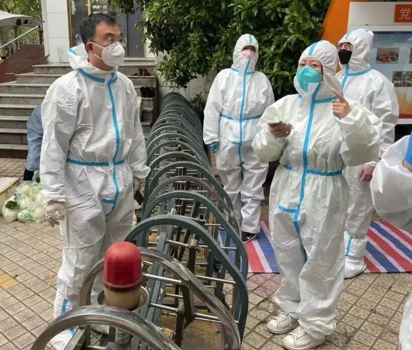 做完核酸检测的前期准备工作,时间已悄然来到下午1:30。此时,志愿者已陆续到达居委会。朱磊和社区干部来不及吃一口饭,便匆匆地换上了“大白”衣服。
