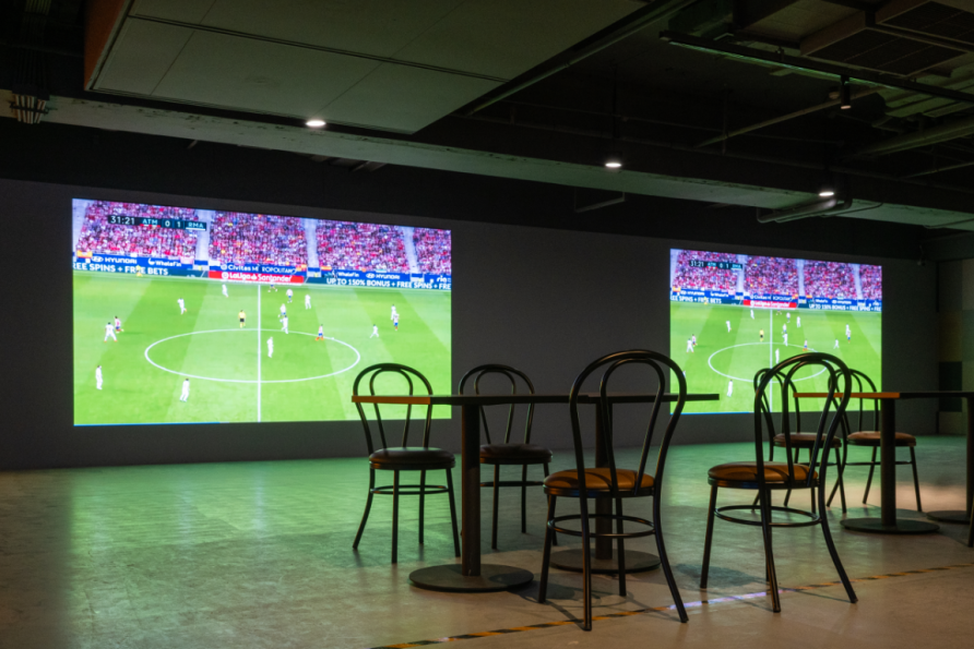 除了主题各异的体育休闲项目,ARK特别设置用餐区,由专业餐饮团队提供比萨、轻餐等美食,特调、生啤精酿等饮品。用餐区旁预先嵌入了两块电子大屏,在世界杯等重大赛事期间可现场直播,球友们能在此一同看球喝彩。