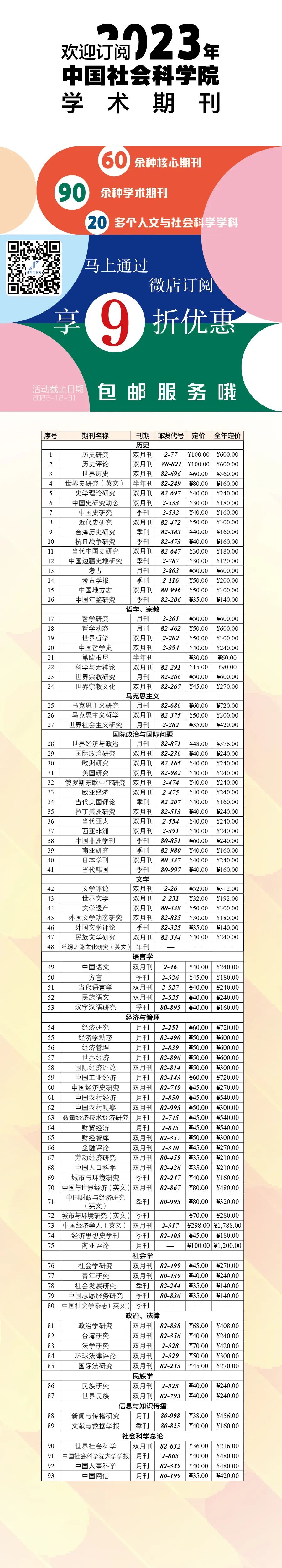 About Feature 社会科学文献出版社旗下品牌,依托中国社会科学院学术期刊,内容涉及文学、语言学、历史学、考古学、哲学、宗教学、经济学、人口学、法学、民族学、社会学、国际问题等人文学科,共80余种期刊。弘扬学术,传承经典,即时推送期刊最新资讯。