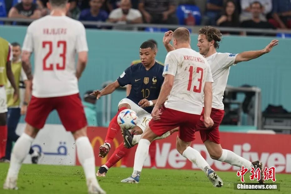 图为法国球员姆巴佩(蓝)在比赛中。中新社记者 崔楠 摄
