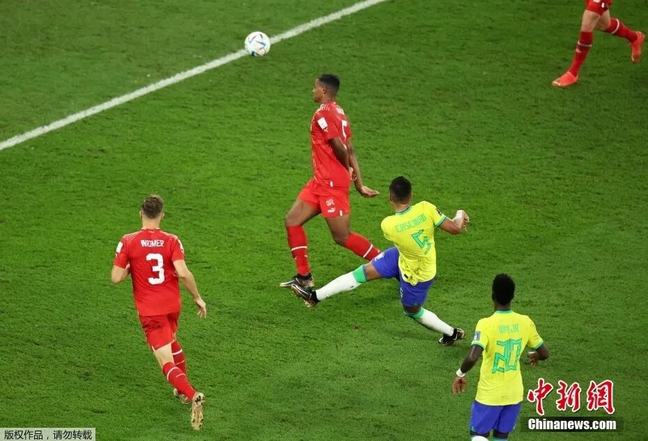 图为巴西队球员卡塞米罗(黄)射门瞬间
