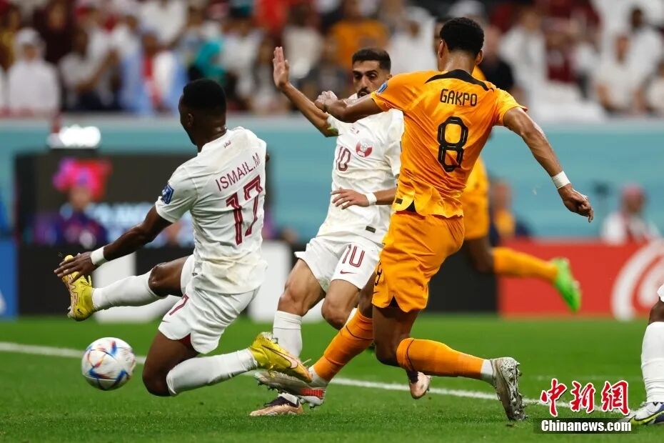 图为荷兰球员科迪·加克波(右)射门。中新社记者 富田 摄