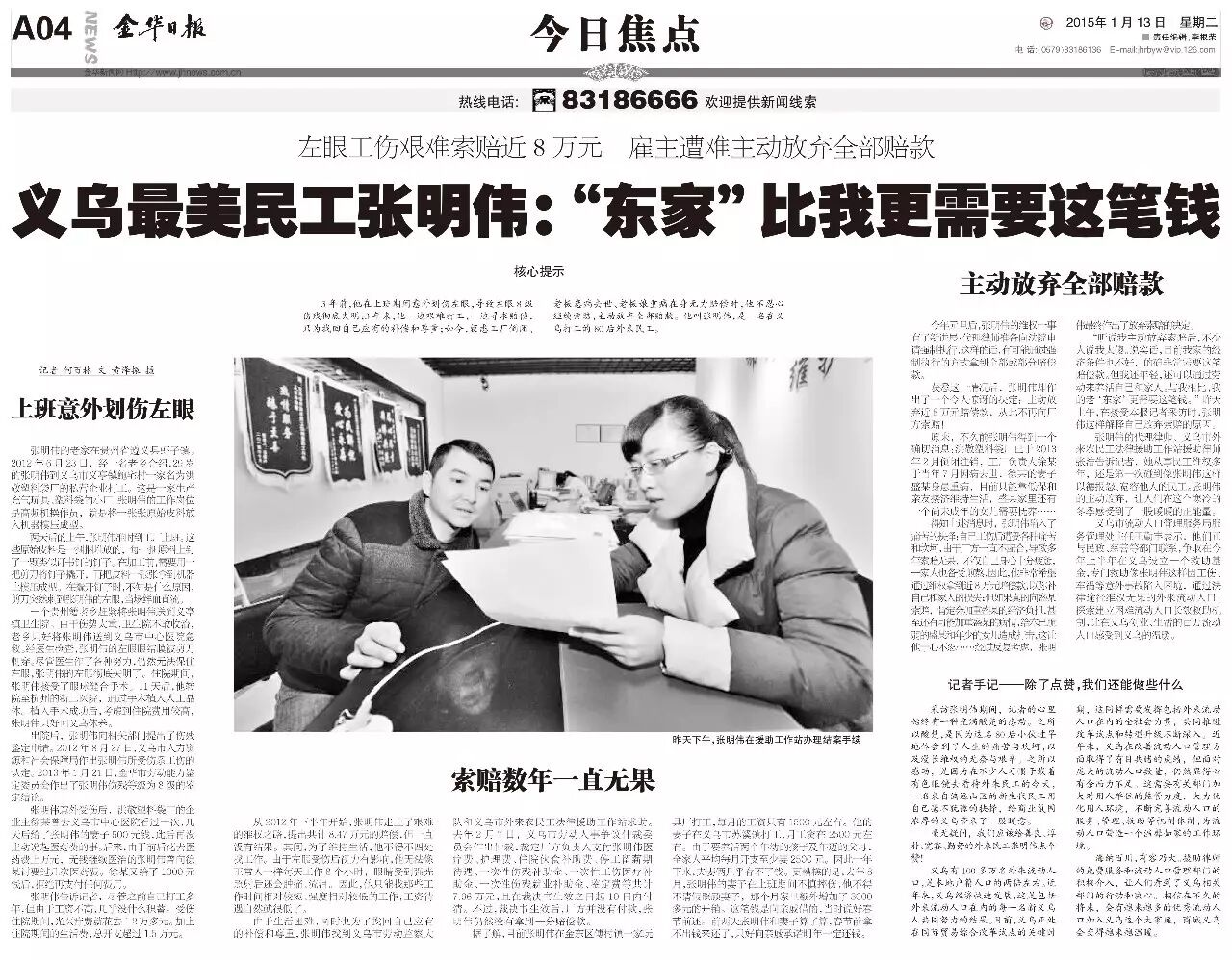 2015年1月13日《金华日报》A04