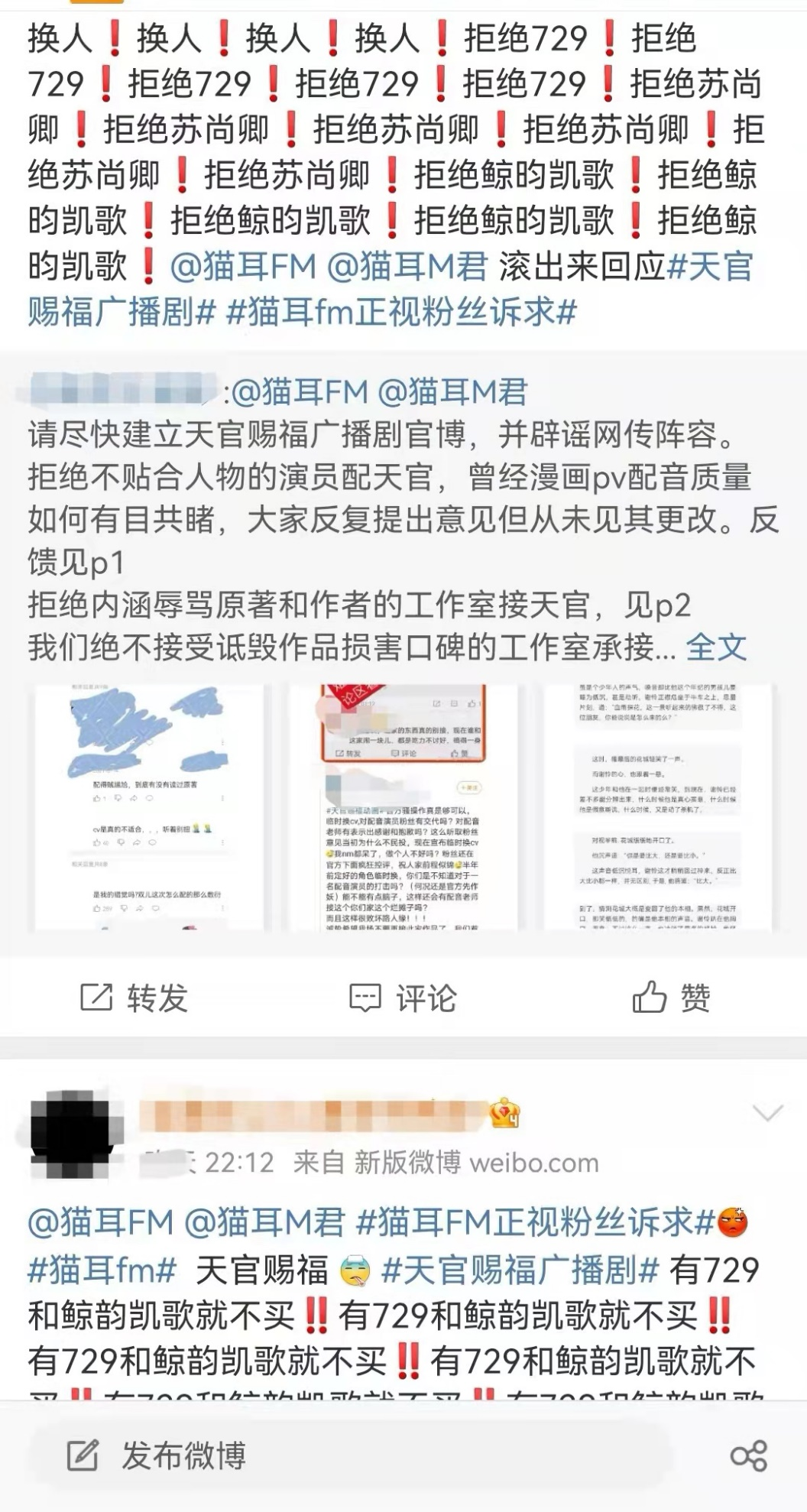 直到前段时间《天官赐福》广播剧登上热搜,还有不少粉丝在话题下发帖抵制729声工场。