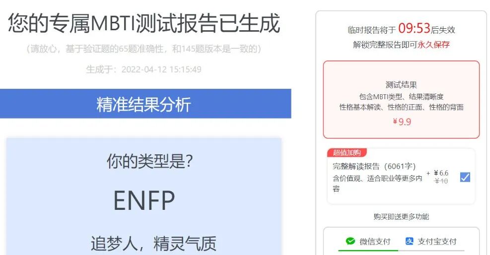 最直接的一种变现模式是付费看测试结果和分析报告。网络上充斥着很多测试链接,测试之前并没有付费的提示,一般都是测试到最后才提示用户必须付费看结果。