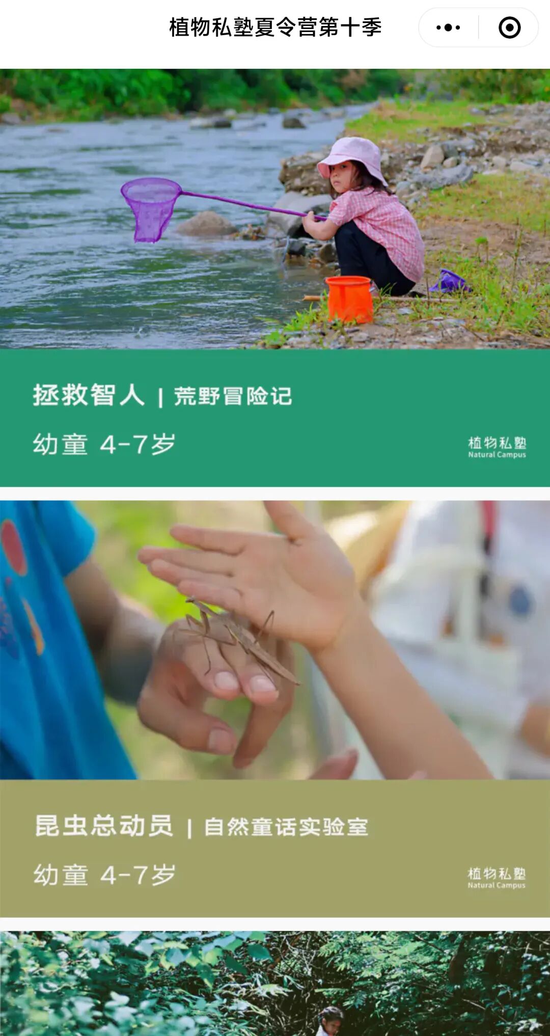 「创业最前线」注意到,随着大量企业入局,市面上出现了各类“花式夏令营”:诸如主打全英文交流的“美式夏令营”,面向女孩的“军事营”,与大熊猫、东北虎亲密接触的“野生动物保护营”,探索航天科研基地的“科学营”,在森林或草原中体验搭树屋、看花鸟鱼虫的“自然营”,还有以徒步、登山、划船、游泳等体能运动为主的“运动营”等等。
