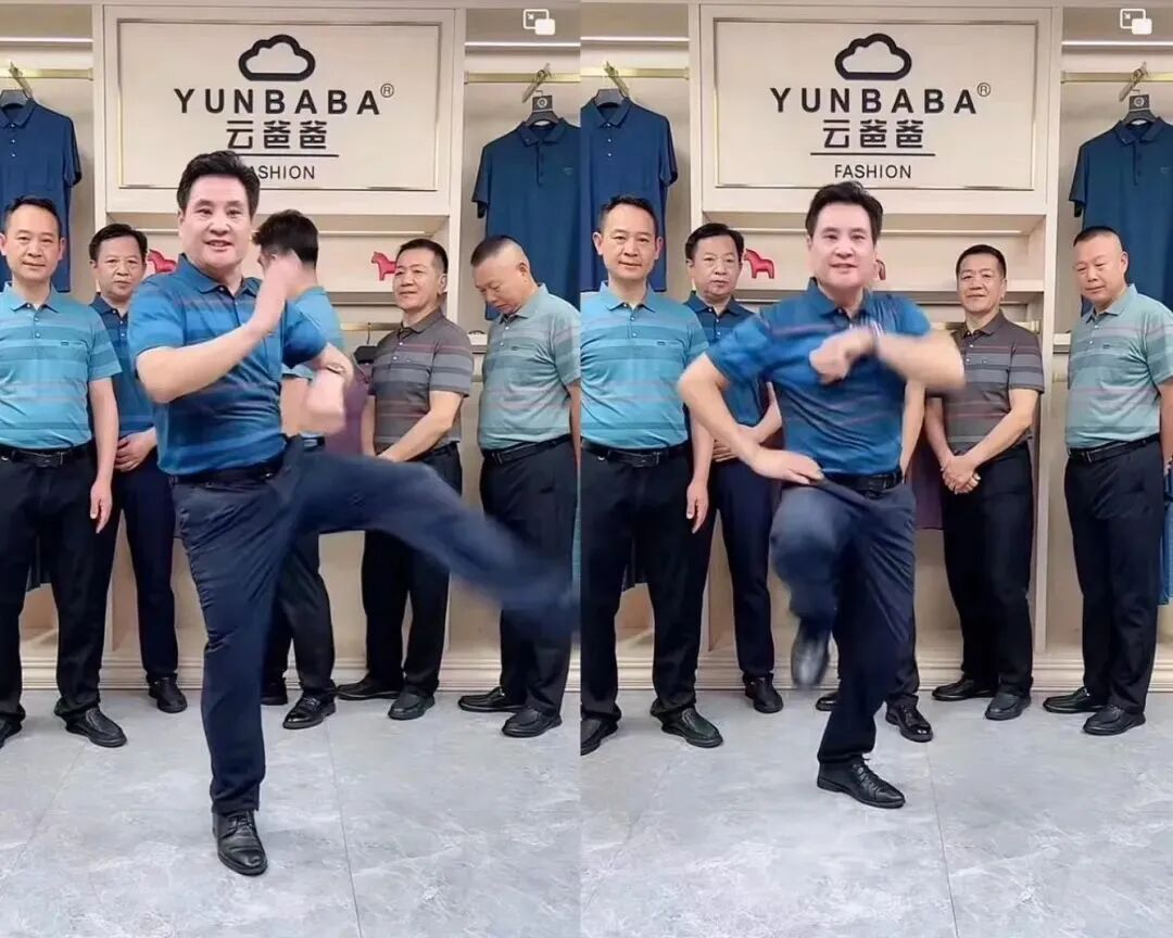 这种中老年的潮流穿搭做法可以说是无国界,似乎地球上每个年轻人的成长道路上,都曾经出现过这么一位熟悉的“成熟人士”。在tiktok上也流行过反向穿搭梗,同样短袖配西裤,精髓都是衣服下摆都要掖进裤子里。视频博主@熬一耶ye 在观察到短视频平台生“20岁梗”红后就开始整活。几个同学统一换上“成熟男士”着装,在学校里闲逛。只要穿上这些魔法套装,都会情不自禁陷入同一套动作模组:背手、叉腰、挺肚子,昂着头不紧不慢地踱步前走。为了模仿出灵魂,他们仔细回忆了自己初中高中老师的习惯动作,再进行演绎,加上服装加持,一切都那么自然。![]()