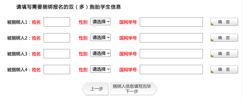 自愿选择捆绑式报名的双(多)胞胎学生,请按系统提示的步骤进行操作。